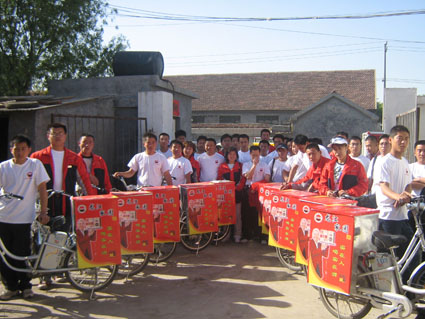 5月即將走過,炎熱的夏季又將來臨,對于徒步在戶外拜訪終端的銷售精英們來說,無疑將面臨嚴峻的考驗。為了改善大家的工作條件,提高工作效率,山東濟南新上了15輛電動自行車。實踐證明,電動車不但成本低,方便、快捷,沒有禁區(qū),而且很好的避免了跳店弊病的發(fā)生。不僅如此,山東辦還充分利用這一資源,將電動車進行了車體包裝,起到了非常好的宣傳效果。